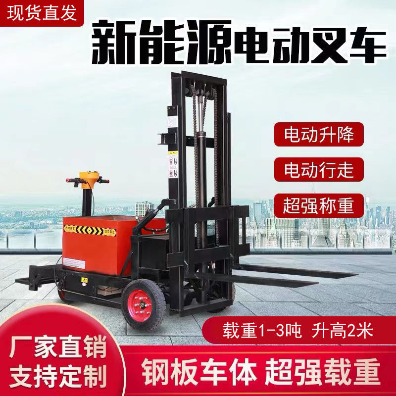 滨海县小型电动叉车1吨站驾式2吨液压升高铲车全自动仓储堆高车